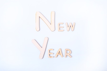 New Year words on wooden blocks. Inscription New year wooden word block.