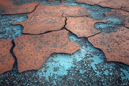 This image features a close-up of cracked earth revealing a striking contrast between orange and blue textures, illustrating the beauty of natural landscapes.