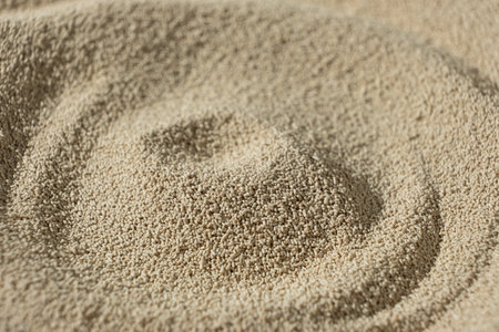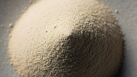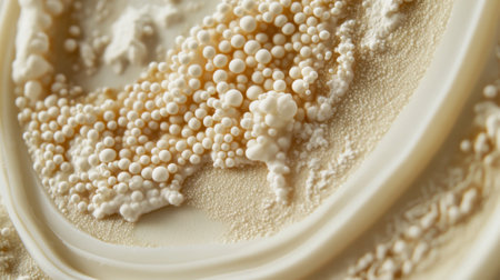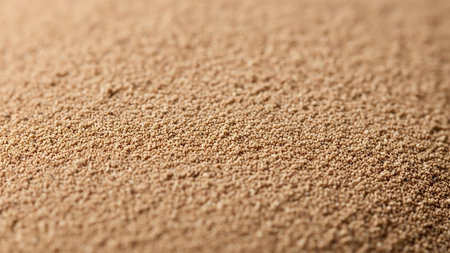 Extreme close-up of dry yeast granules, showing their granular texture and small particles under warm lighting, suitable for baking themes.