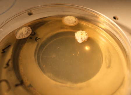 basra, Iraq - april 30, 2021: photo of fungi growth on agar media in petri dish