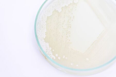 Top view of petri dish and culture media with bacteria on white background, solid media, nutrient agar, Test various germs, virus, Coronavirus, Corona, COVID-19, Microbial population count.