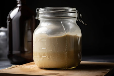 sourdough starter floating in jar, showing the fermentation process, created with generative ai