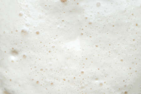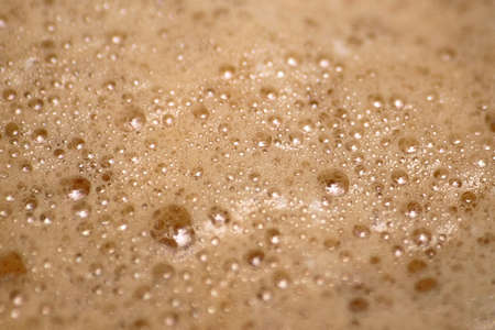 Close up of frothy coffee foam creating abstract shapes with visible bubbles, perfect for backgrounds or textures