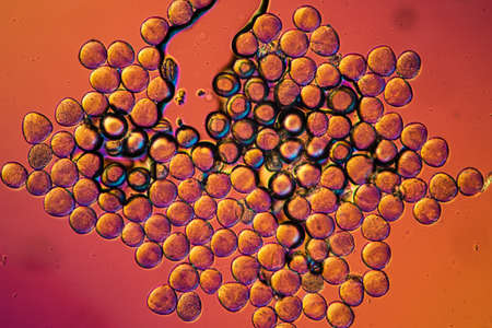 Mold spores under the light microscope, orange peel mold, magnification 400 times