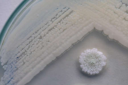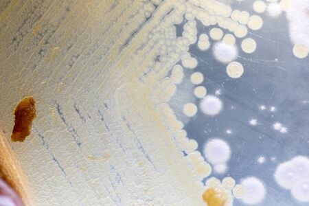 Backgrounds of Colony Characteristics of Fungus and algae in petri dish for education.