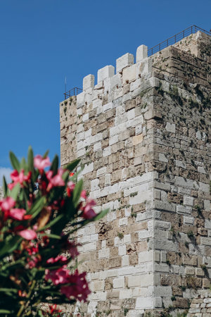 Byzantine City walls in Yedikule Fortress in Zeytinburnu Istanbul, Turkey (Ruins of ancient fortress wall of the Emperor Theodosius)
