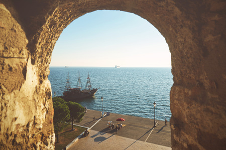 THESSALONIKI, GREECE - SEPTEMBER 29, 2016: View from the white tower at Thessaloniki city in Greece