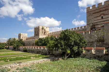 The ancient city walls of Constantinople in Istanbul, Turkey