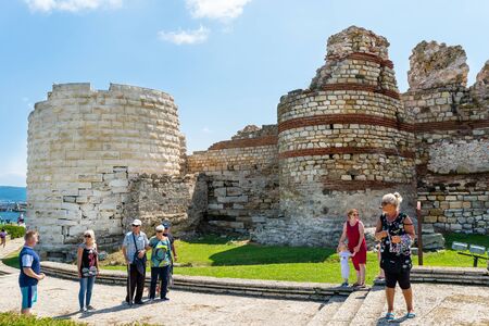 Nessebar, Bulgaria July 15, 2019. A crowd of people walking around the ancient and historic city of Nessebar in Bulgaria. Nessebar is an ancient city-museum, more than three millennia on the Bulgarian Black Sea Coast, located in Burgas Province. Fortifica