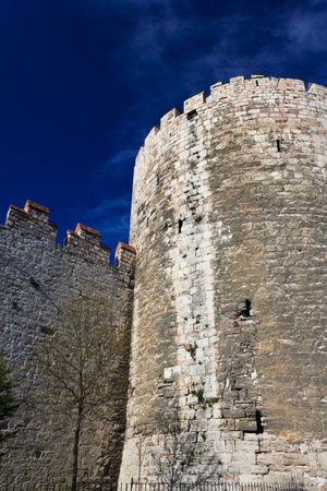 Historic city walls in Istanbul, Turkey.