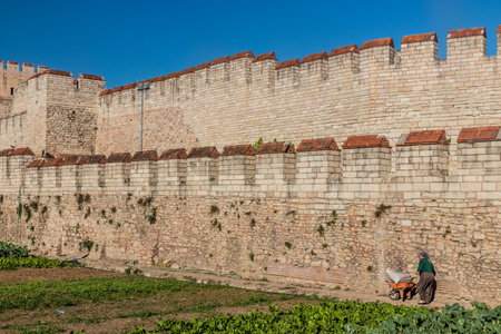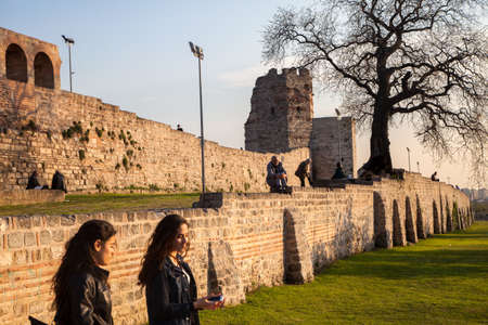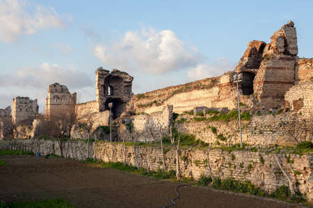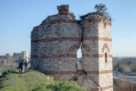 Fatih,IstanbulTurkey - 02-04-2017:The ruined view of the historic Byzantine city walls