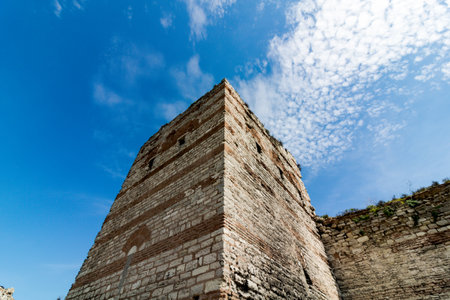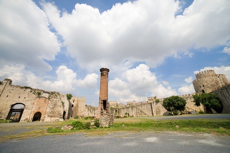 Ruins of ancient fortress wall of the Emperor Theodosius in the center of Istanbul. Turkey