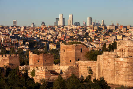 Modern Istanbul cityscape with historical Byzantine walls