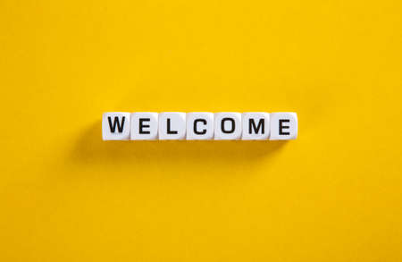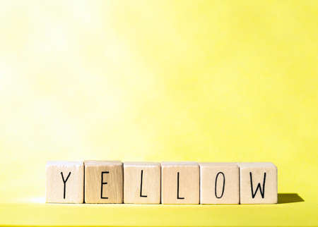 Wooden cubes with the word Yellow on Yellow background, Cheerful summer concept colorful retro design