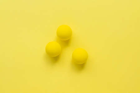 Three synthetic yellow balls on yellow background. Monochrome minimal concept.