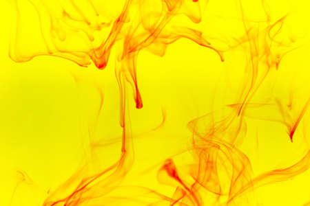 Ink in water red on yellow background.