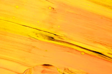 Abstract trendy golden orange backdrop. Yellow and orange paint pigment mix background. fluid art