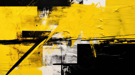 Abstract neon yellow, black background, paint splashes, bold design. Vibrant style adds dynamic art appeal.