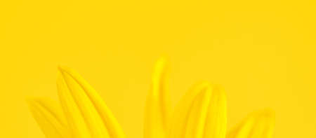 Yellow flower petals of topinambur on yellow background, top copy space, blurred yellow flower Jerusalem artichoke, beautiful soft focus backdrop. Yellow petals of wild sunflower flower close up