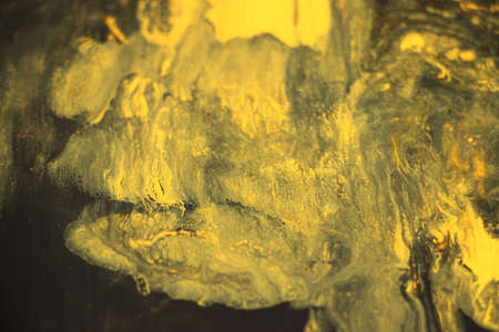 Black and yellow pigments difusion into each other Abstract colorful vivid background.