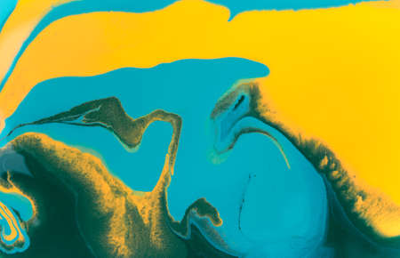 Yellow and black marbling pattern. Golden marble liquid texture. Fluid art.