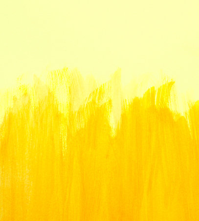 Handmade, hand painted of yellow acrylic brush strokes on white background. Fluid art texture on canvas. Vertical image style.