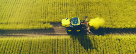 A tractor is spraying fertilizer and chemicals, pesticides, created by realistic Generative AI