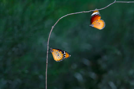 Plain tiger butterfly eating sweet nectar of flower in the garden.