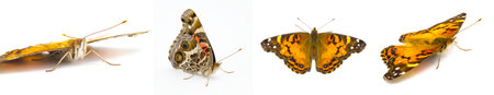 American painted lady Butterfly - Vanessa virginiensis - isolated on white background four views showing intricate pattern and design