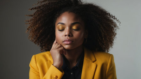 Contemplative Young African American Woman in Yellow Blazer and Black Blouse, Thoughtful Expression.