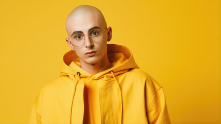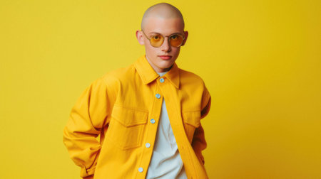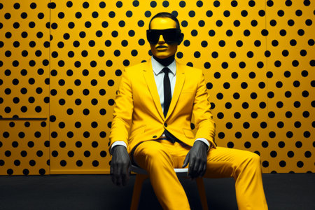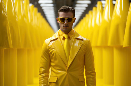 Man wearing yellow latex. Stylish guy with trendy yellow background. Generate ai