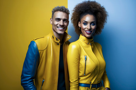 Trendy and expressive: Vibrant leather clothing shines on stylish black couple