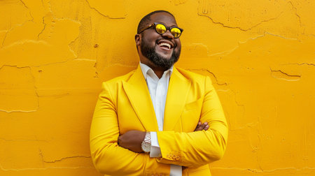 Stylish African Man in Yellow Attire and Sunglasses on a Yellow Background