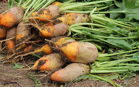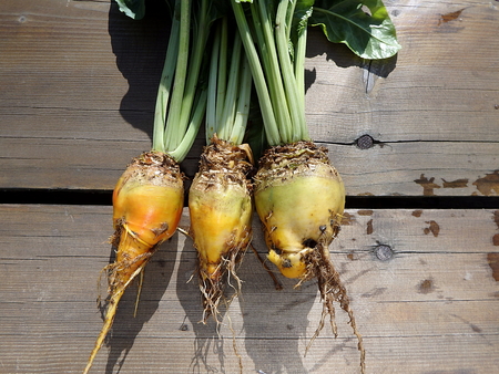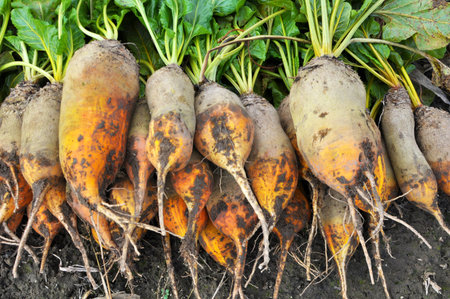 Fodder beet - crop harvest,(Beta vulgaris 'Mangelwurzel'),