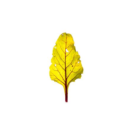 Yellow leaf isolated on white background. Bright flower top view. Autumn flora. Plant on color table concept