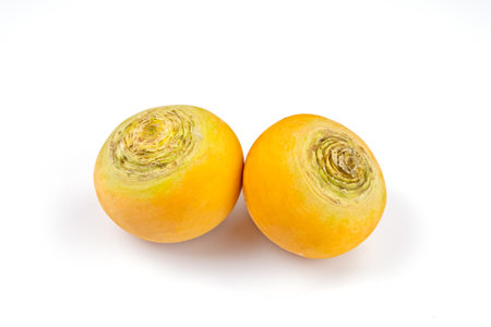 Turnip yellow isolated on a white background. Sweet turnip studio photo. Russian turnip on a white background.