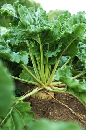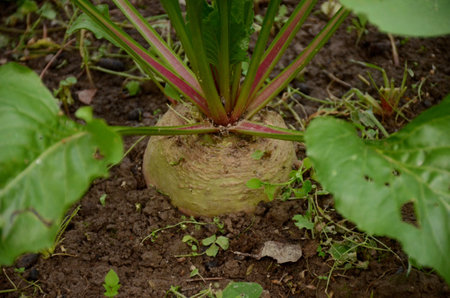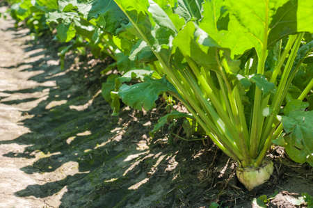 Fodder beets grow on the farm field, which are intended for animal fattening