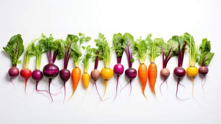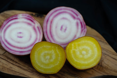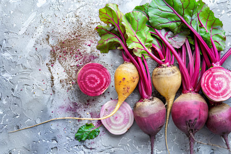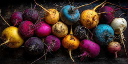 This image showcases an array of vibrant beets with different colors and textures, highlighting their freshness. Ideal for food-related projects, culinary art, or healthy lifestyle themes.
