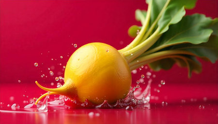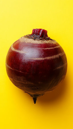 Close-Up of a Single Fresh Beetroot with Bright Yellow Background, Vibrant Color Contrast in Nature