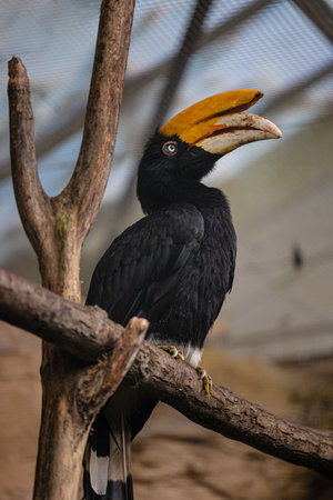 Hornbill perched on a branch. in the zoo.