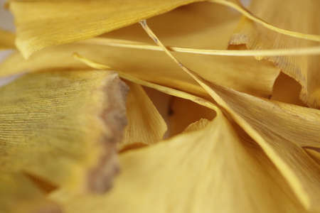 Yellow ginkgo biloba leaves close-up texture background