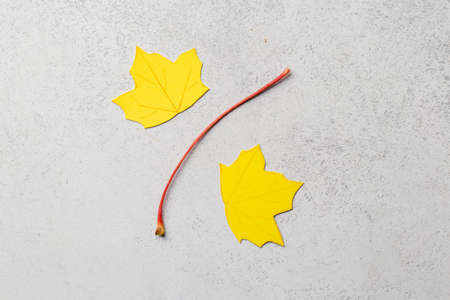 copy space with yellow autumn leaves.october and november vibes .season flat lay on a white background.thanksgiving holiday design