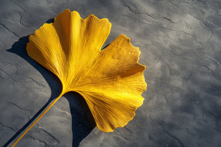 Golden Ginkgo Leaf on Textured Gray Concrete Background - Nature Detail