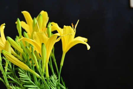 yellow lilly garden flower close up in the sunshine