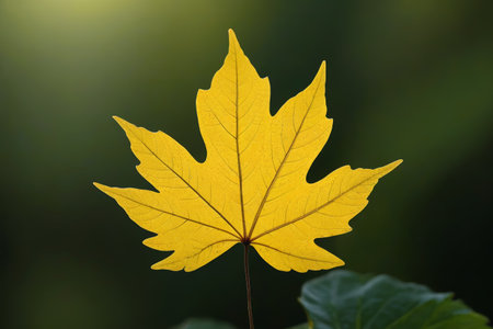 This vibrant yellow ginkgo biloba leaf displays its unique fan-shaped structure and fine veining, highlighting the natural beauty of autumn foliage.