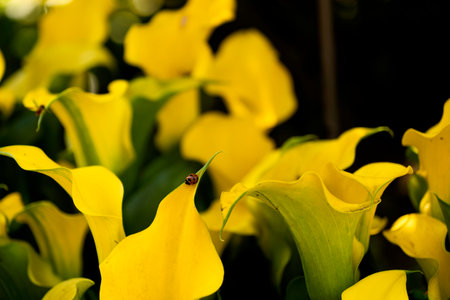 Yellow Calla lily flower blooming in the garden, stock photo