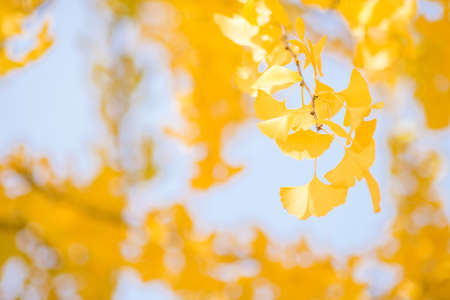 Yellow Ginkgo biloba in clear weather in late autumn