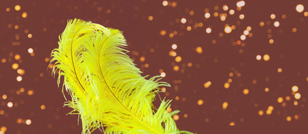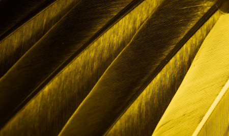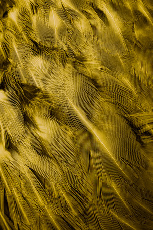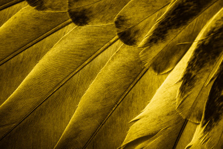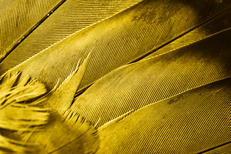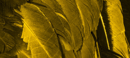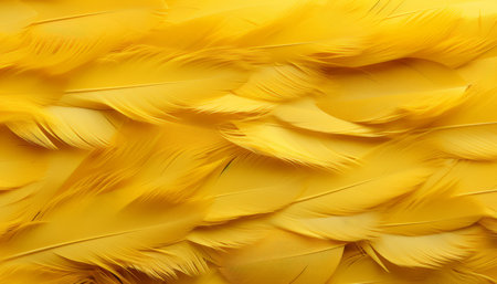 Vibrant digital artwork of yellow feather texture background with grand bird feathers