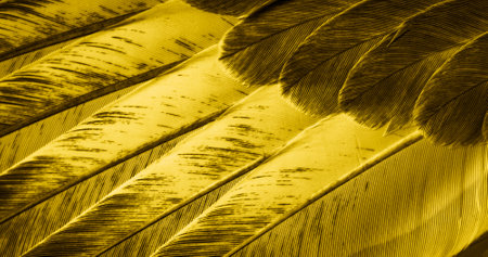 Intricate digital artwork yellow feather texture background with detailed big bird feathers