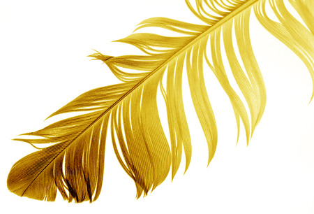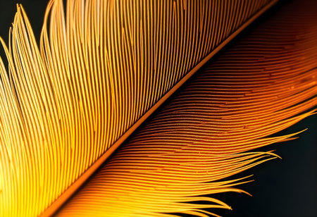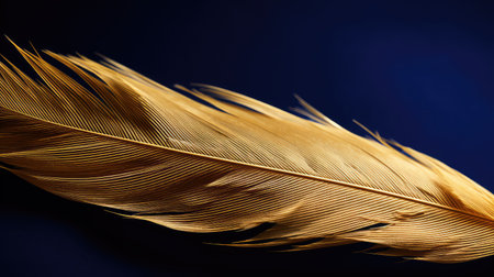 Golden feather with intricate details creating a mesmerizing pattern, ideal for nature, wildlife, and design projects
